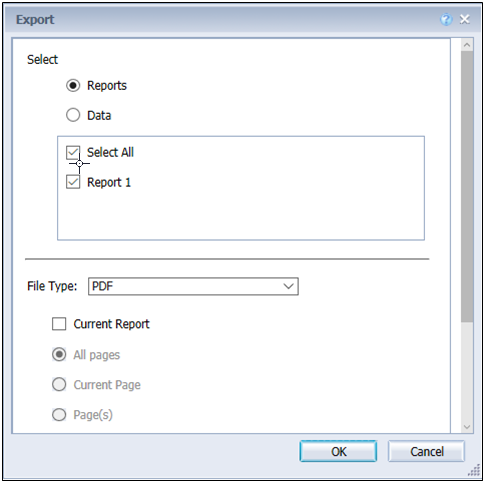 You can export a complete document or one/more reports to a text file, a PDF, an Excel spreadsheet, a CSV file, or a CSV archive. If you want to export raw data, only the .CSV format is available. You can select whether you want to export all data or just the data for specific queries. Except for the text file format, each file type has several settings available when you are in the Export dialog box.